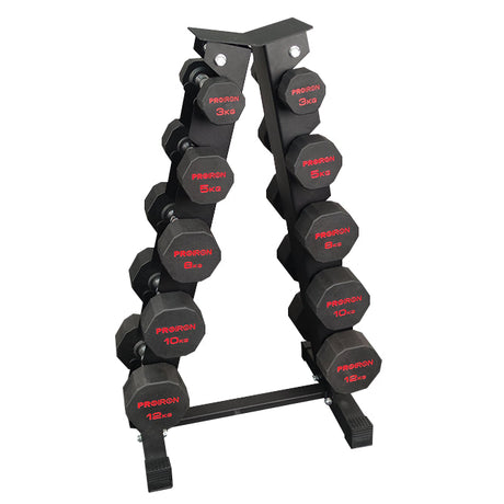 Sets de Mancuernas Hexagonales de Caucho + RACK de 5 Pares
