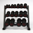 Sets de Mancuernas de Caucho Dodecagonales + RACK de 3 Niveles